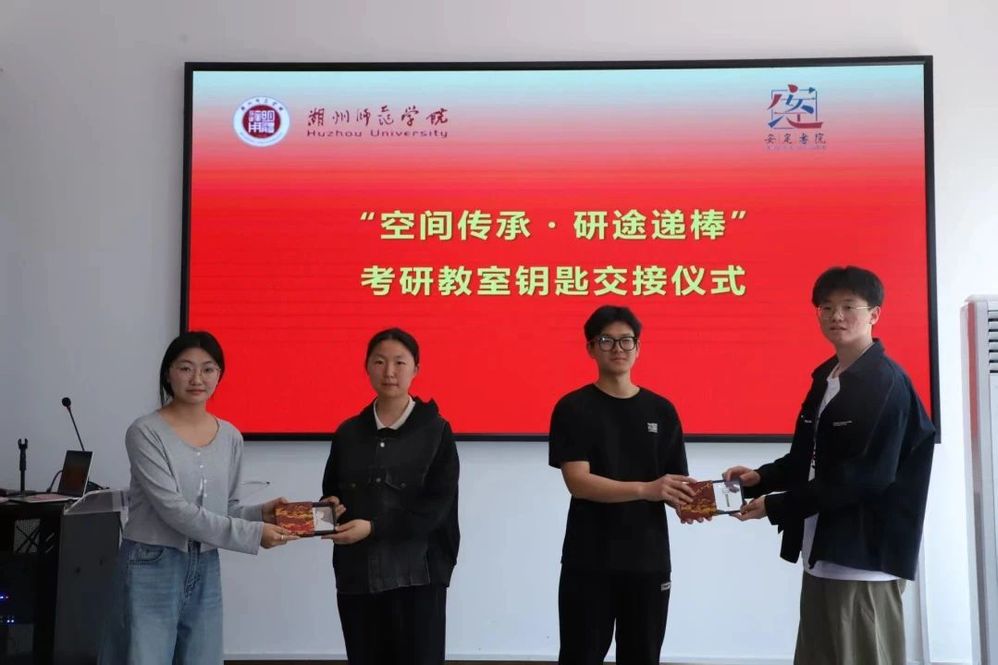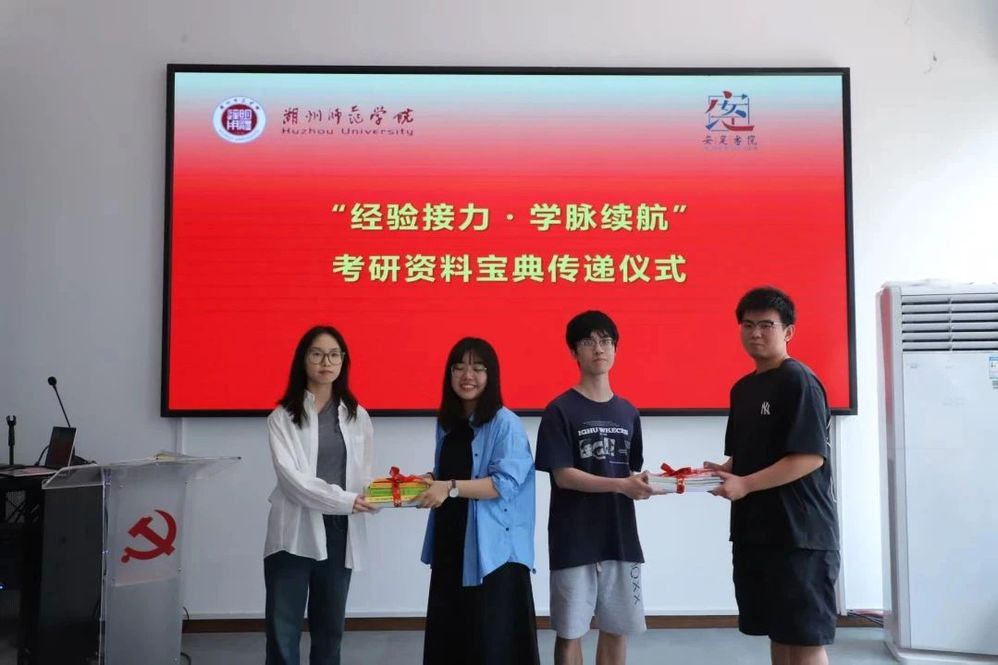 在温情而富有意义的传承仪式中,王欣怡、胡家乐将满载奋斗记忆的考研空间钥匙传到2026届李思屿、张浩手中,寓意“研途接力,步履不停”;金沐旸、李佳杰将精心整理的备考笔记赠予王函僖和张君琪,让知识脉络在纸页中生生不息。这些承载着汗水与智慧的物品,不仅是物质的传递,更是精神的延续,激励着新一代学子勇往直前。