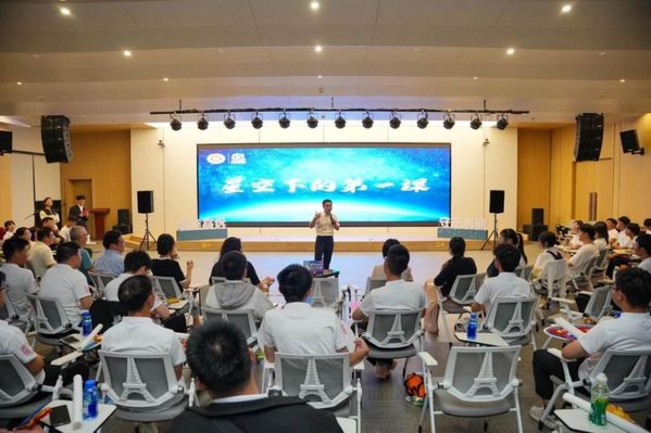 最后,全体师生在星空下合影,将这一晚的感动与决心永久定格。这场第一课不仅是一次精心设计的始业教育,更是一堂融入思政内涵、以学生喜闻乐见的方式组织起来的成长启蒙课。通过联系学院的校领导亲自授课、学长学姐暖心互动、多元环节情感共鸣,活动真正实现了教育意图与青年审美的有机统一,在潜移默化中引导新生开启从“高中生”到“大学生”的角色转变,为他们走好大学之路奠定了坚实而温暖的基础。