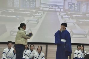 一场戏,跨越千年;一堂课,贯穿古今。近日,安定书院胡瑗文化节在东校区26-114拉开帷幕。师生携手演绎“分斋教学”经典场景,以情景剧形式生动“复活”湖学传统,让“明体达用”的校训精神在沉浸式课堂中焕发新光彩。执行院长吕小芬学院师生共同观看演出。
